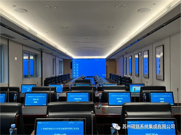 整个系统化繁为简,开会只需在触控屏上点击开启会议,整个系统所含设备有序开启,免去会议前繁琐的准备工作,设备全部自动开启到预设工作状态,无论是本地会议还是远程视频会议轻松有序,会议结束在触控屏点击结束会议,系统设备有序全部关闭。