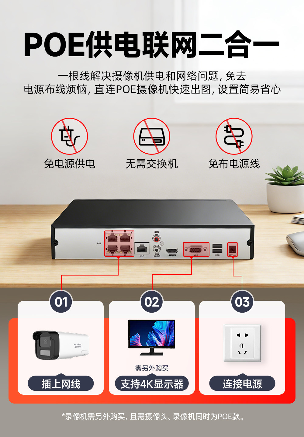 海康威视硬盘录像机4 8 16路poe网络摄像机NVR单/双盘位监控主机