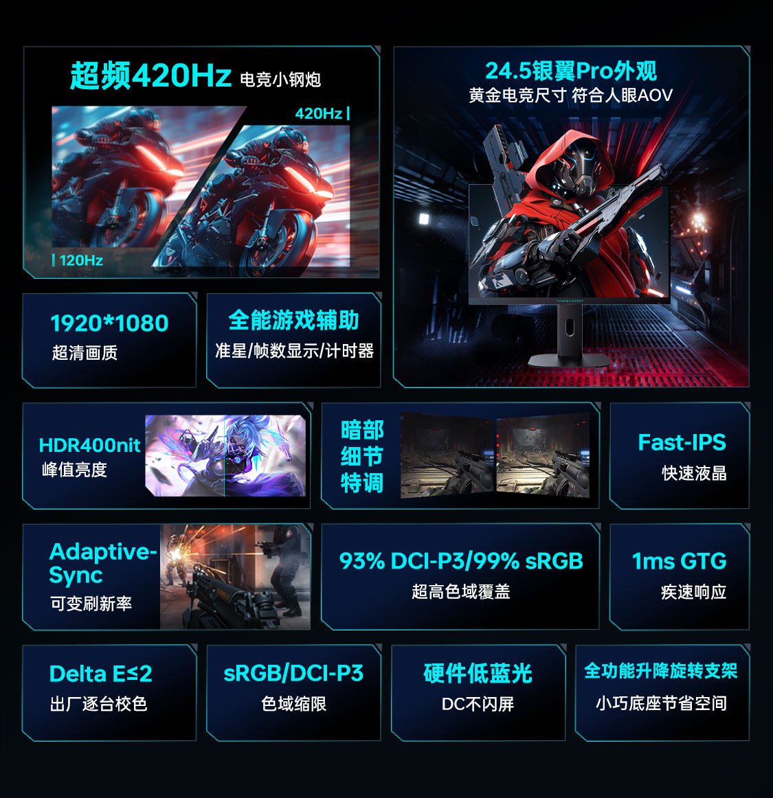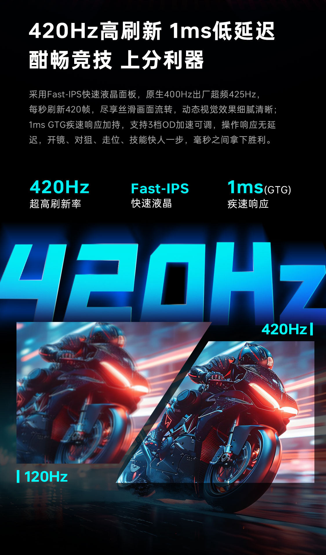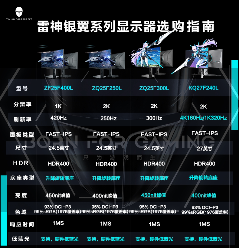 ZF25F400L】原生400Hz超高刷 24.5''FHD 超频420Hz 升降旋转底座 银翼 【ZQ25F250L】银翼系列 24.5英寸 2K 250Hz刷新率电竞黄金比例 升降旋转底座 【ZQ25F300L】银翼系列 24.5英寸 2K 300Hz刷新率电竞黄金比例 升降旋转底座 【KQ27F240L】旗舰外观27''2K 240Hz 400nit高亮 升降旋转底座 银翼